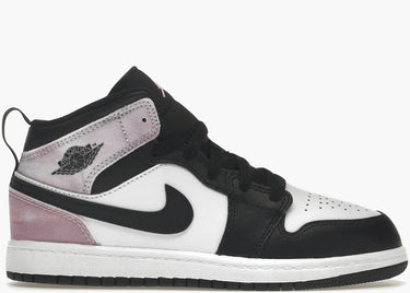 Le Nike Air Jordan 1 Mid SE Zen Master (PS) presentano il classico schema cromatico "Black Toe", con una base in pelle bianca e rivestimenti neri. A rendere unico il modello sono gli inserti posteriori in tessuto con una stampa tie-dye multicolore. Il design si completa con un’intersuola bianca e una suola in gomma nera.