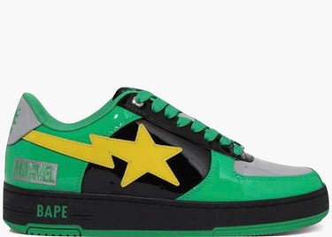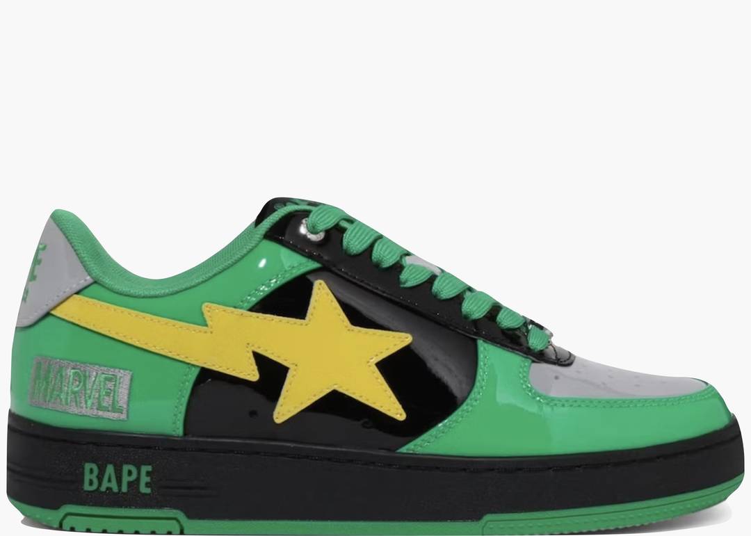 La BAPESTA MARVEL THE FANTASTIC FOUR THE THING rende omaggio al membro più potente dei Fantastici Quattro con un design audace che combina giallo, nero e blu, evocando la sua forza indistruttibile. La tomaia in pelle bovina è arricchita da una grafica di The Thing sul tallone laterale sinistro e da un charm metallico con il numero “4” sui lacci. La suola in gomma assicura durata e comfort, mentre le solette illustrate con artwork fumettistici completano l’esperienza. Il packaging in stile blister da collezione richiama l’universo delle action figure, esaltando il valore esclusivo della sneaker.