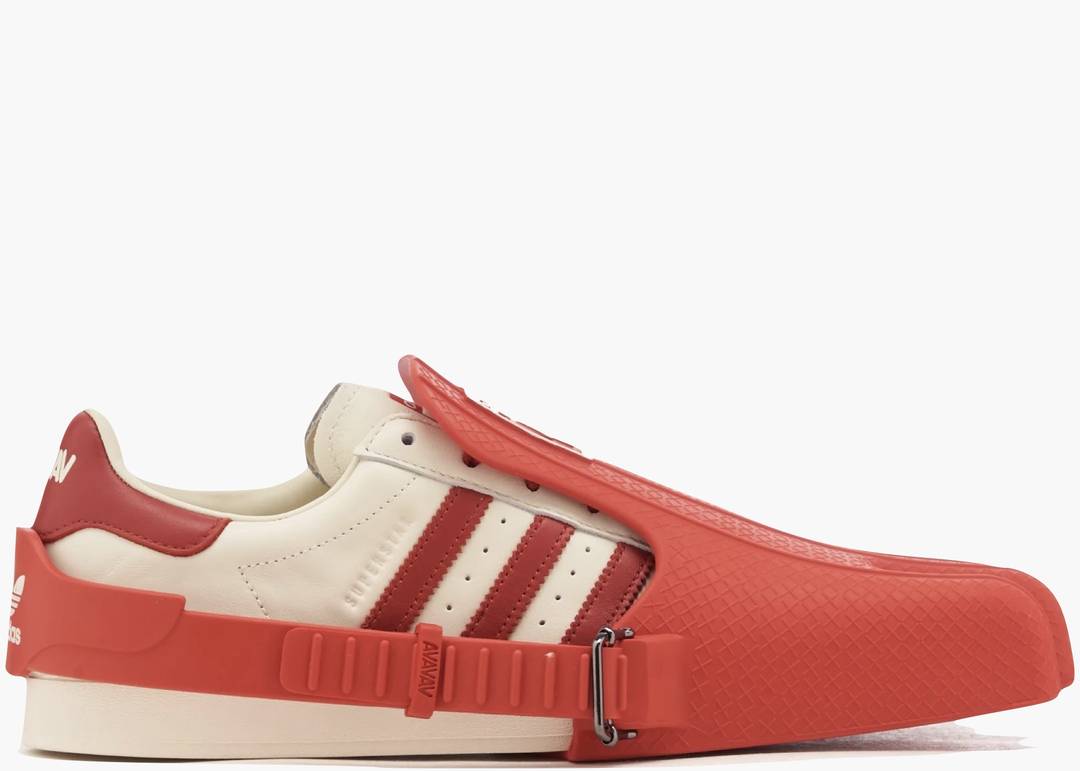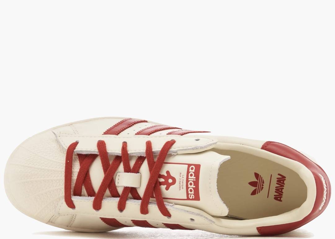 L'audace collaborazione tra la casa di moda fiorentina AVAVAV e Adidas presenta le sneaker Superstar AVAVAV Better Scarlet (W). Una silhouette iconica rivisitata in due colorazioni: cremisi vivaci o elegante nero con dettagli color crema. La particolarità di questo modello è l'accessorio "Superfinger", che aggiunge un tocco esuberante alla sneaker. Progettata con materiali di alta qualità, questa collaborazione unisce lusso e streetwear per un look unico.