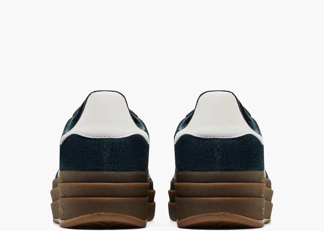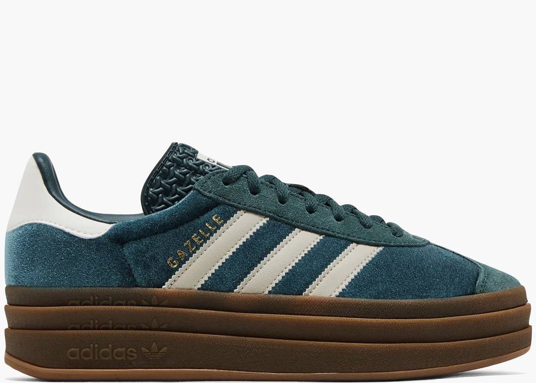 Le Adidas Gazelle Bold Mineral Green Velvet da donna celebrano un design iconico con una raffinata tomaia in velluto verde minerale. Rispettando il DNA Adidas, presentano le 3 strisce seghettate e la scritta "Gazelle" in oro che ne sottolinea l'autenticità. La suola platform a triplo strato garantisce altezza e comfort prolungato, rinnovando uno stile classico con un tocco contemporaneo ed elegante.