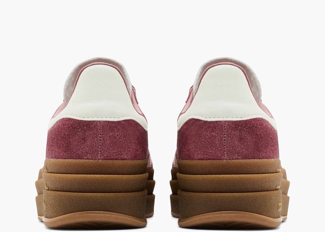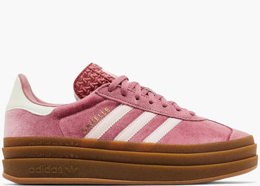 Le Adidas Gazelle Bold Sandy Pink Velvet da donna reinventano un classico intramontabile degli anni '70 con una tomaia in velluto color sabbia rosa. Questo modello mantiene le iconiche 3 strisce seghettate e il logo "Gazelle" in oro, simboli dell'autenticità Adidas. La suola platform a triplo strato offre maggiore altezza e comfort, unendo stile raffinato e funzionalità per un look contemporaneo e senza tempo.