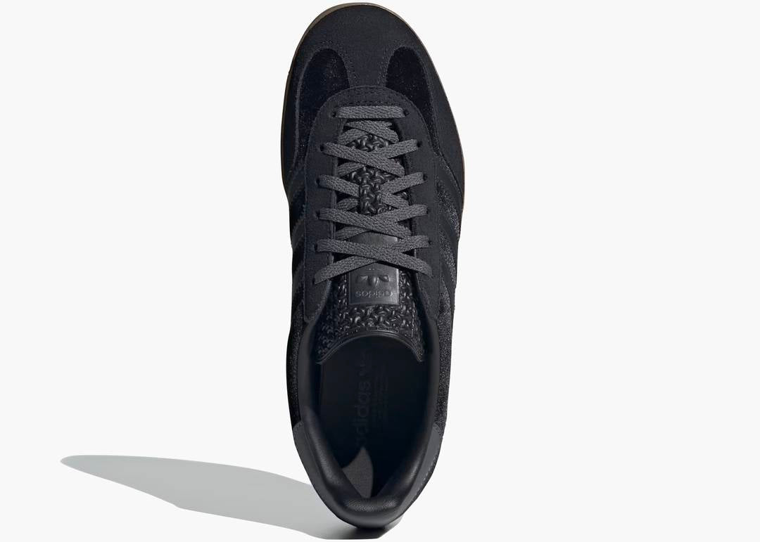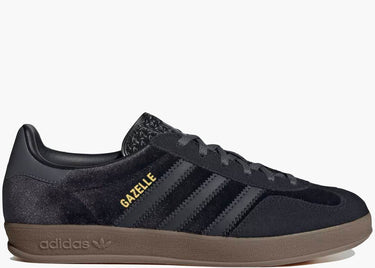 Le Adidas Gazelle Indoor Black Velvet da donna uniscono performance e stile con una tomaia in velluto nero impreziosita da dettagli grigio scuro a contrasto. La suola gum garantisce grip e resistenza, rendendo questa scarpa ideale per l’attività indoor e per un outfit casual raffinato e versatile.