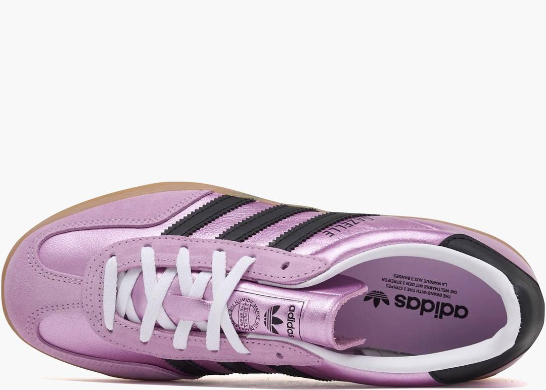 Le Adidas Gazelle Indoor Bliss Lilac Black (W) combinano funzionalità e stile urbano, trasformando un modello da allenamento in un’icona del lifestyle contemporaneo. La tomaia nella raffinata tonalità bliss lilac metallic si abbina agli accenti core black, mentre la suola traslucida gum aggiunge un tocco distintivo e duraturo. Queste sneaker offrono comfort e design sofisticato, ideali per chi desidera unire performance e tendenza senza rinunciare alla versatilità quotidiana.