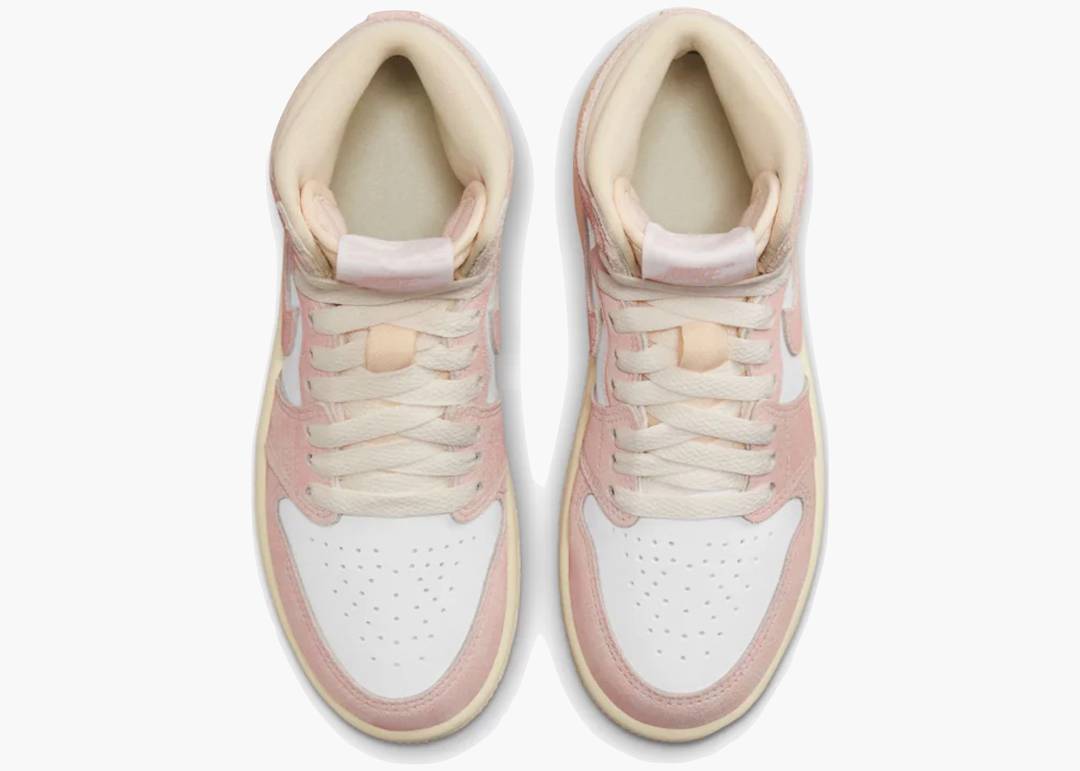 Le Nike Air Jordan 1 Retro High OG Atmosphere Pink (PS) presentano una combinazione di colori Atmosphere, Bianco, Muslin e Sail. Questo modello richiama lo stile della versione "Hyper Royal" del 2021. La tomaia è realizzata in pelle bianca con inserti rosa, mentre il colletto e lo Swoosh sono in muslin. La linguetta è impreziosita da etichette intrecciate con il logo "Nike Air". Il tutto è completato da un'intersuola Sail e una suola in gomma.