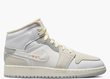 Rinnova la tua collezione di sneakers con le JORDAN 1 MID CRAFT (GS). La famosa silhouette è stata aggiornata con dettagli industriali come cuciture arancioni e schiuma esposta per un look unico. Realizzate in pelle bianca e suede grigio, questi sneakers offrono uno stile elegante e confortevole per ogni occasione.