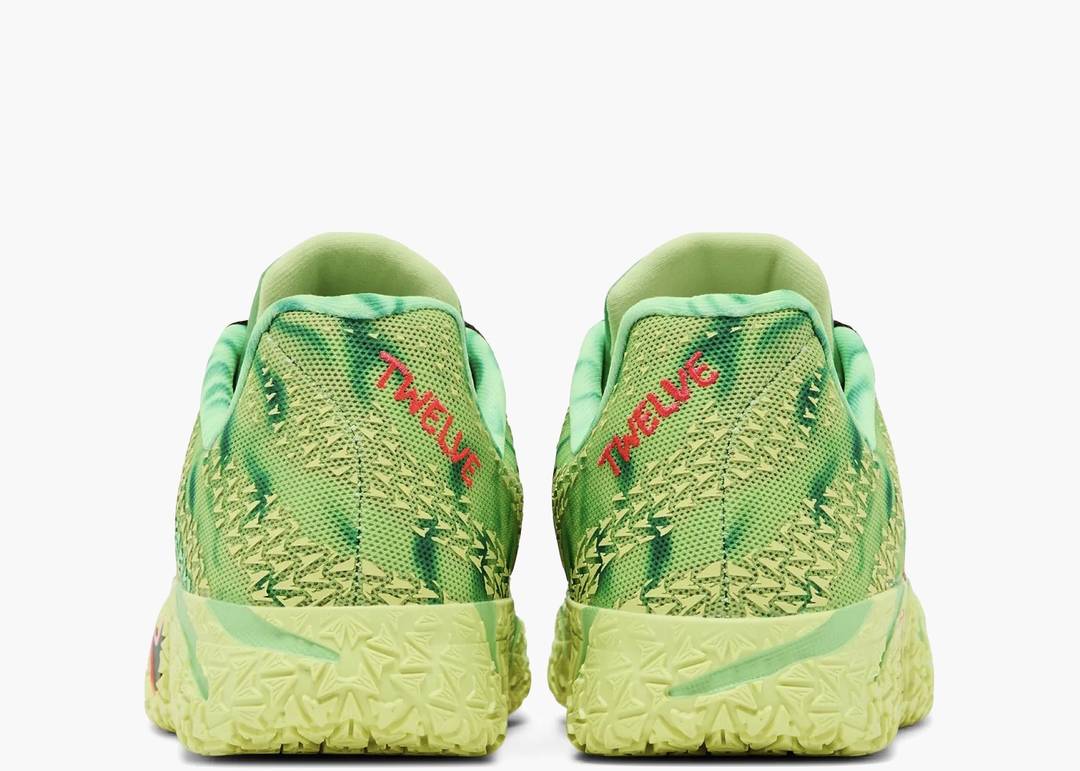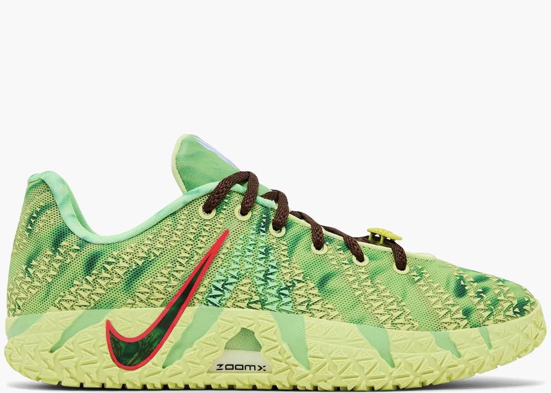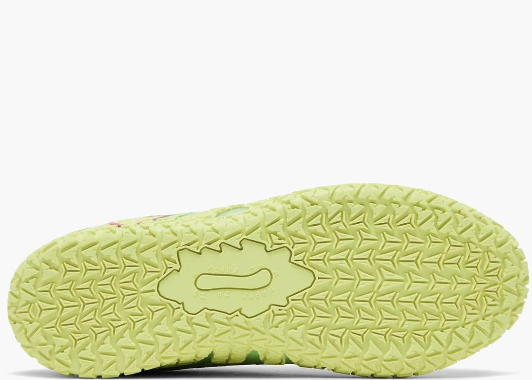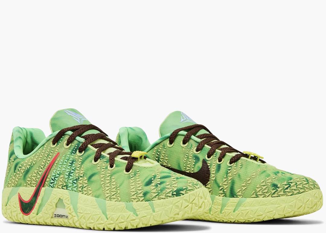Nike Ja 3 Zombie (GS) La Ja 3 segna l’arrivo della terza scarpa signature firmata Ja Morant. La sneaker è realizzata con una tomaia che combina mesh traspirante e rinforzi in TPU a contrasto, pensati per garantire leggerezza e durata. L’intera superficie è caratterizzata da una texture con motivo triangolare, che rafforza l’estetica tecnica del modello e assicura un supporto extra. Lo Swoosh in schiuma, presente su entrambi i lati, crea un deciso contrasto con la base color Light Lemon Twist, mentre il logo personale di Morant compare su linguetta, soletta e suola come dettaglio distintivo.