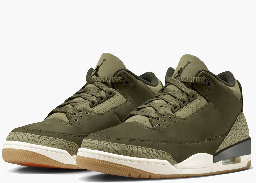 La Nike Air Jordan 3 Retro Family Affair combina tonalità sofisticate di medium olive, sequoia, neutral olive, sail e cremisi su una tomaia in nabuk di alta qualità. L’iconica stampa a elefante, realizzata in un verde più chiaro su punta e tallone, arricchisce il design con un dettaglio distintivo. Il classico marchio Nike Air sul tallone completa un’estetica che unisce tradizione e innovazione, offrendo sia stile che comfort a chi la indossa.
