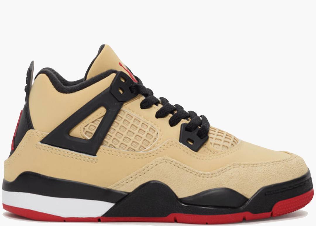 La Nike Air Jordan 4 Retro Pizza (PS) si distingue per il suo design ispirato alla pizza, con una combinazione di colori sesamo, rosso e nero. La tomaia in suede e pelle marrone chiaro richiama la crosta cotta al forno, mentre i dettagli neri richiamano la cottura. I tocchi di rosso sulla suola e i loghi Jumpman evocano la salsa marinara, mentre la soletta riproduce la classica tovaglia a quadri rossi e bianchi delle pizzerie, conferendo un tocco autentico e originale a questa sneaker.