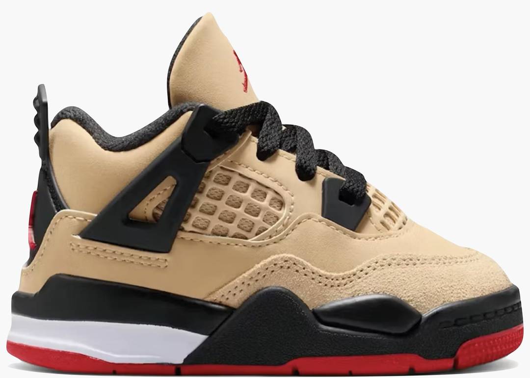 La Nike Air Jordan 4 Retro Pizza (TD) combina un design ispirato alla pizza con materiali di alta qualità. La tomaia in suede e pelle marrone chiaro richiama la crosta cotta al forno, mentre i dettagli neri evocano la cottura stessa. I tocchi di rosso sulla suola e i loghi Jumpman richiamano la salsa marinara, completati da una soletta che riproduce la classica tovaglia a quadri rossi e bianchi delle pizzerie. Un modello unico che unisce stile e originalità per i più piccoli appassionati di sneaker.