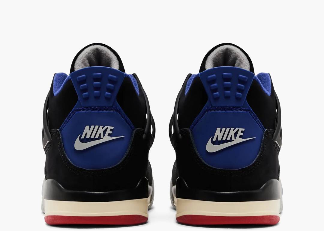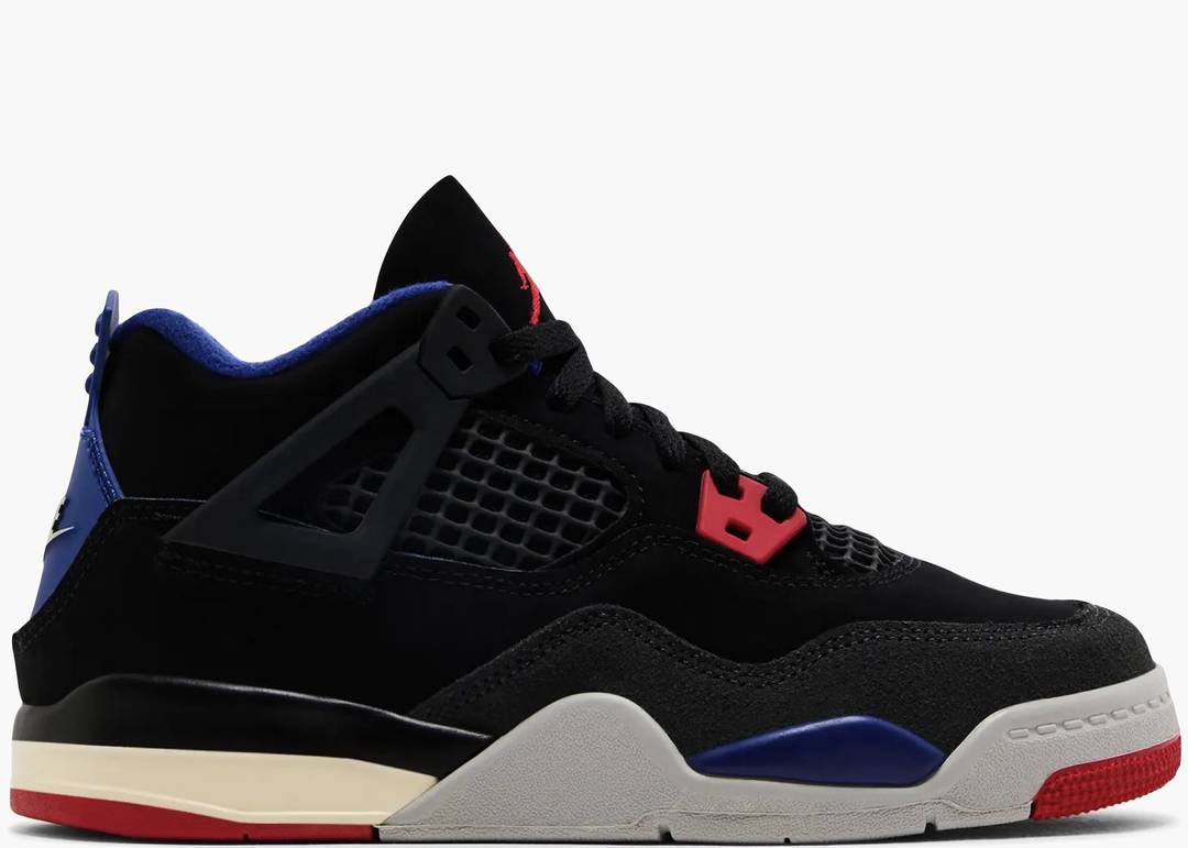 La Nike Air Jordan 4 Retro Rare Air (PS) combina un’elegante tomaia in nabuk nero con sovrapposizioni in grigio scuro che definiscono la punta, offrendo resistenza e stile. I dettagli in blu royal, presenti sulla fodera interna, sulle linguette del tallone e sull’intersuola, creano un contrasto visivo distintivo, mentre il rosso fuoco aggiunge un tocco dinamico al design complessivo. Questa sneaker unisce materiali di qualità e un’estetica raffinata, ideale per chi cerca performance e look esclusivo in un modello iconico.