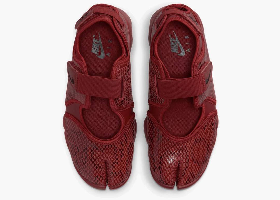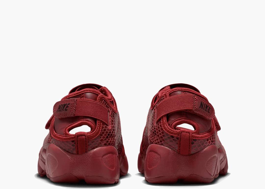 La Nike Air Rift Team Red Black (W) rende omaggio ai maratoneti kenioti con un design ispirato al barefoot running degli anni ’90. La tomaia in simil pelle di serpente team red, arricchita da dettagli tono su tono, unisce stile e resistenza. Il minimalismo è caratterizzato dall’etichetta Swoosh sulla punta e sulla soletta, valorizzando la silhouette distintiva e nostalgica che ha definito un’era dell’atletismo.