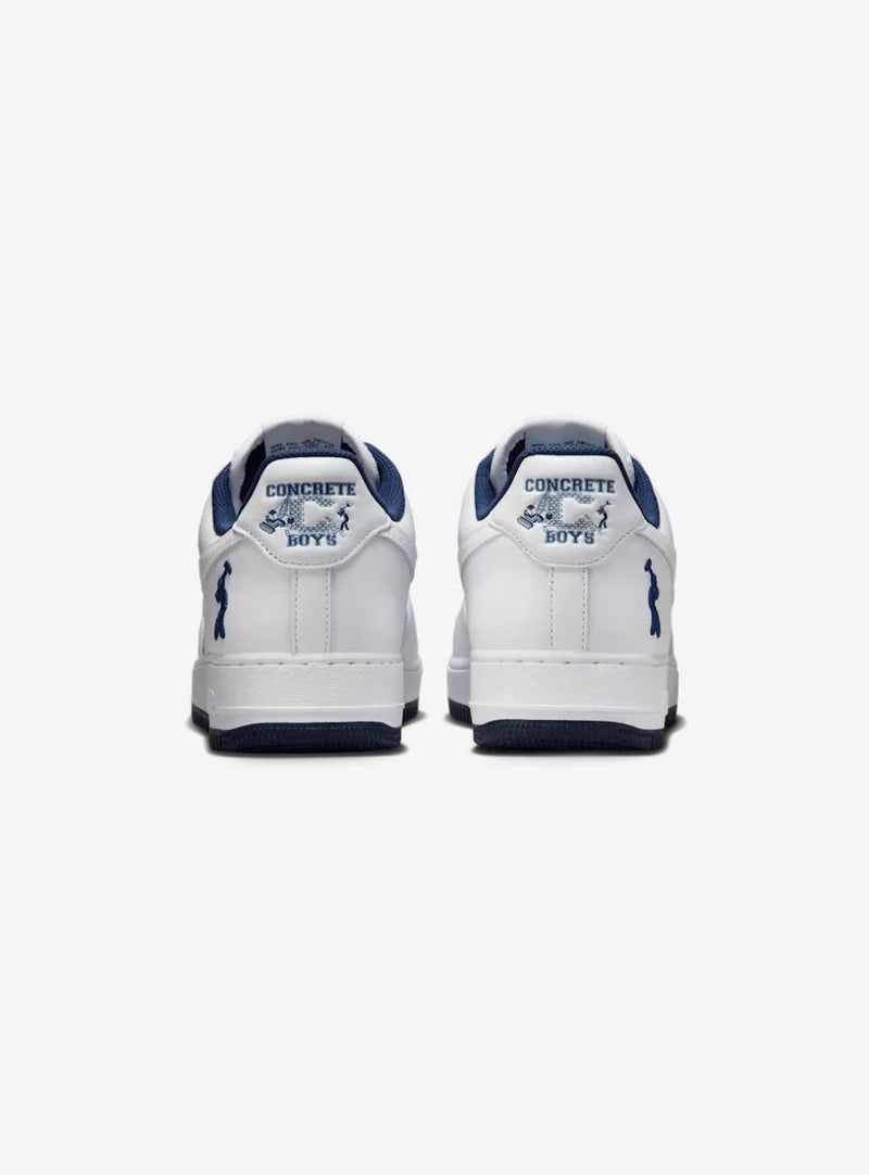 La Nike Air Force 1 Low Lil Yachty Concrete Boys It's Us è una speciale edizione che celebra lo stile streetwear e la creatività musicale. La base bianca offre una tela perfetta per mettere in risalto il logo dei Concrete Boys, ricamato con filo Midnight Navy, a rappresentare l'identità forte e il carattere unico del collettivo. La perfetta combinazione tra moda e cultura urbana.