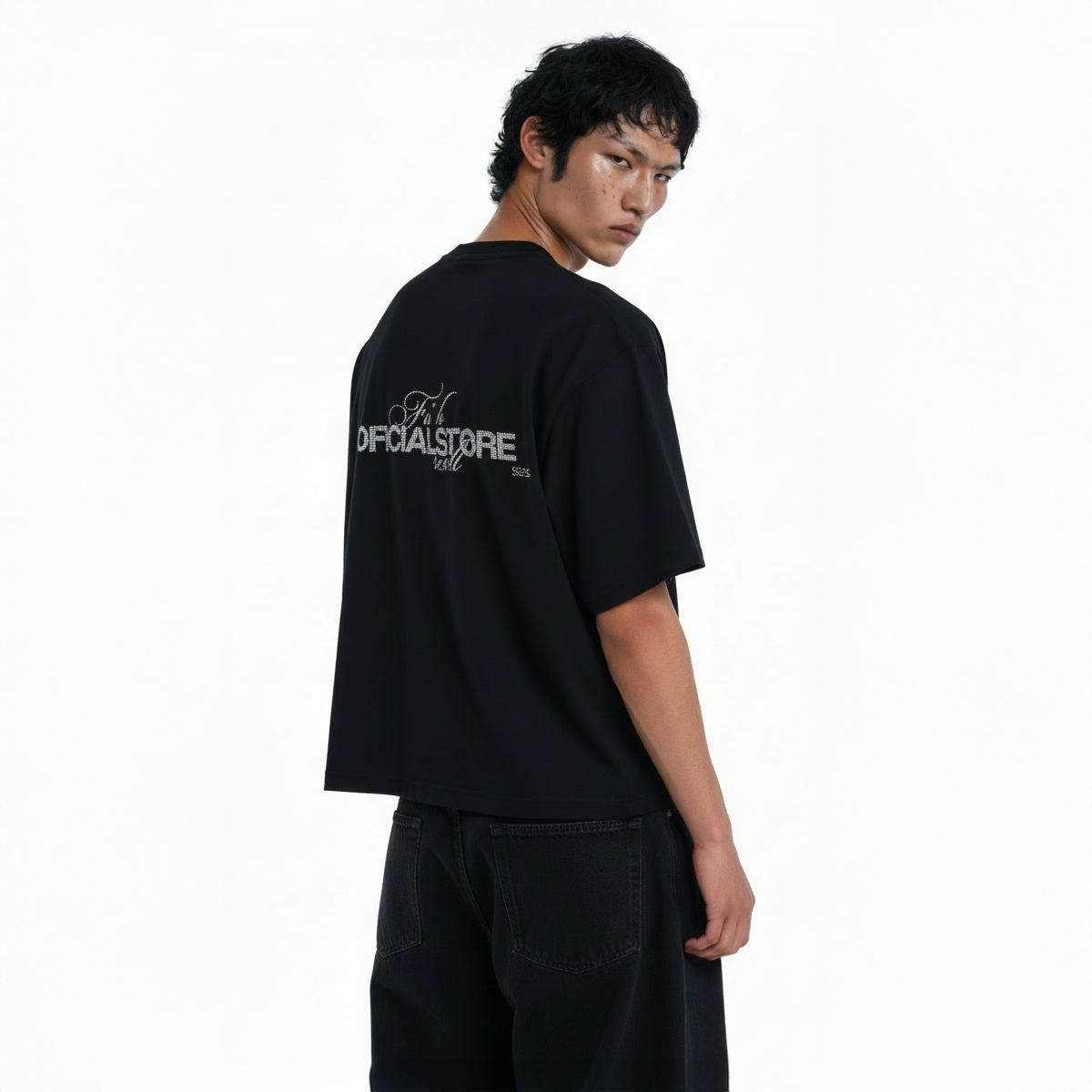 La OFFICIAL STORE F*CK RESELL TEE BLACK LIMITED EDITION è una maglietta esclusiva realizzata in cotone 100% da 220 GSM, garantendo durata e comfort. Il taglio cropped e la vestibilità boxy offrono uno stile contemporaneo e una silhouette moderna. La scritta Rhinestone sul retro aggiunge un dettaglio distintivo e raffinato, rendendo questa t-shirt un capo unico.