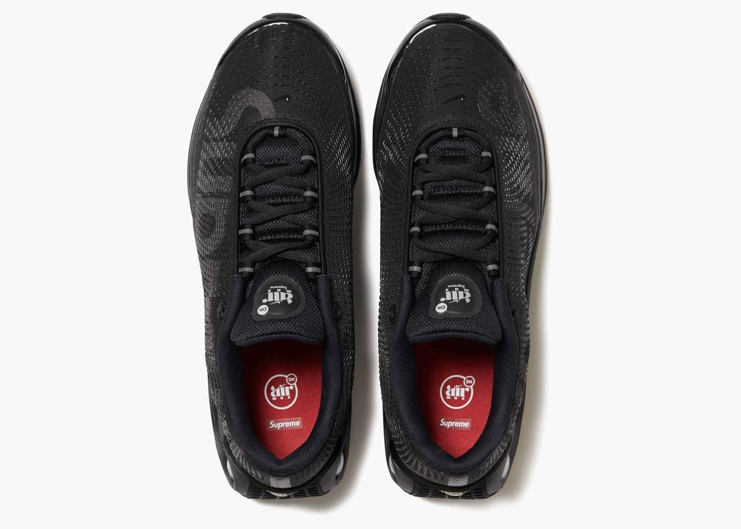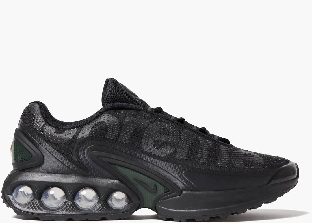 La Nike Air Max Dn Supreme Black è una sneaker tecnologica e di design, perfetta per gli amanti della moda e del comfort. La tomaia in mesh con logo stampato riflettente garantisce traspirabilità e stile, mentre la suola e l'intersuola in Phylon con air bag trasparenti assicurano un'ammortizzazione ottimale. Con l'inconfondibile logo Supreme sul tallone, questa scarpa è un must-have per ogni collezione.