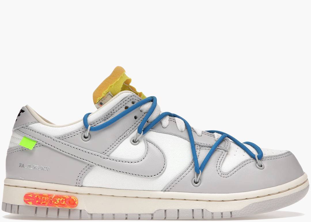 La Nike Dunk Low Off-White Lot 10 fa parte della collezione esclusiva che comprende 48 modelli in diverse tonalità di grigio, rappresentando una raffinata esplorazione del "grigio" tra il bianco e il nero, come definito da Virgil Abloh. A differenza dei lotti 1 e 50, che si distinguono per le colorazioni bianche, nere e Swoosh in argento metallizzato, i lotti da 2 a 49 presentano accenti cromatici unici su base grigia. Disponibile tramite accesso esclusivo SNKRS, questa edizione riflette la continua innovazione nel design e nella collaborazione tra Nike e Off-White.