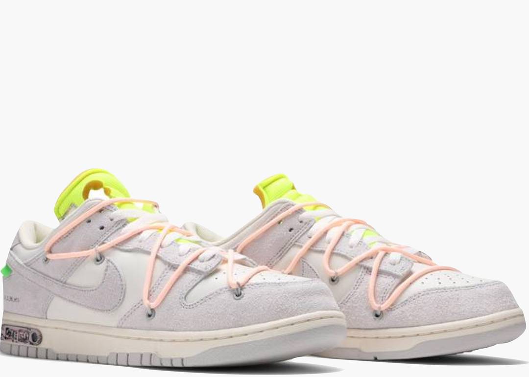 La Nike Dunk Low Off-White Lot 12 fa parte di una serie esclusiva di 48 Dunk caratterizzate da tonalità grigie, che esplorano il concetto di "area grigia tra bianco e nero" proposto da Virgil Abloh. Differenziandosi dai primi e ultimi due lotti, questa edizione presenta dettagli cromatici unici all’interno di una palette sobria, offrendo un equilibrio raffinato tra design minimalista e accenti distintivi. Rilasciata esclusivamente tramite accesso SNKRS, questa sneaker rappresenta un pezzo ricercato per collezionisti e appassionati della celebre collaborazione tra Nike e Off-White.