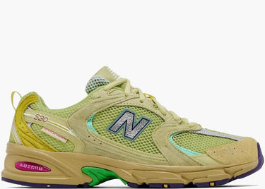 Preparati a dominare il tuo stile con le scarpe New Balance 530 Salehe Bembury Prosperity Be The Prize. La mesh e il suede verde lime, insieme ai tocchi prugna e viola, creano un look audace e unico. Con la firma di Salehe Bembury, ogni passo diventa una conquista.
