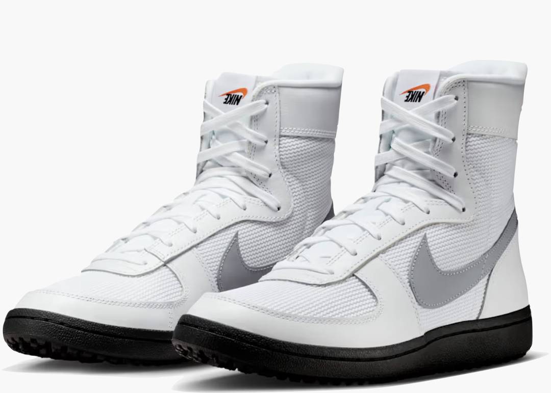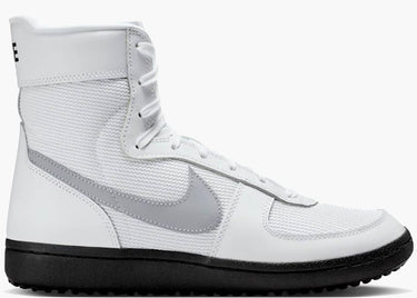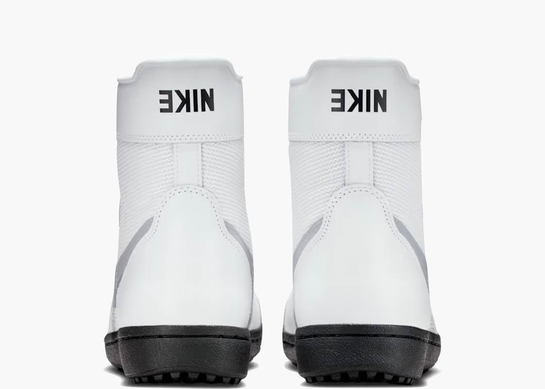 Nike Field General High Stranger Things reinterpreta il basket vintage con precisione storica. La costruzione accosta pelle bianca e mesh testurizzato su una suola nera decorata da borchie, mentre lo Swoosh grigio introduce un contrasto sobrio che preserva l'autenticità retrò. L'accento Safety Orange sulla linguetta richiama il linguaggio estetico Nike classico, arricchito dal testo invertito al tallone che enfatizza i dettagli d'archivio. L'interno svela la grafica esclusiva di Stranger Things integrata in un motivo Upside Down, elevando questa sneaker a pezzo da collezione per chi apprezza l'intersezione tra cultura pop e heritage sportivo.