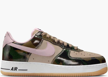La Nike Air Force 1 Low '07 LV8 Patent Camo Pink si distingue per una tomaia in suede khaki arricchita da sovrapposizioni lucide in camouflage, che conferiscono profondità e stile distintivo. I dettagli rosa sullo swoosh, sul tallone e sull’etichetta della linguetta completano il design, offrendo un contrasto cromatico raffinato e moderno. Questa sneaker unisce estetica e qualità, ideale per chi cerca un look unico senza rinunciare al comfort classico delle Air Force 1.