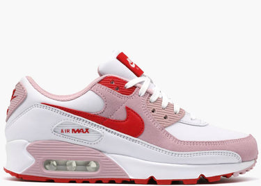 L'Air Max Valentines Day (2021) è un omaggio romantico alla festa degli innamorati. La costruzione presenta cuoricini adorni di rosa e rosso, dallo Swoosh al brand Nike Air. La linguetta si sgancia per rivelare un messaggio divertente: "ME + AM90 = TRUE LOVE", mentre il rosso intenso attira l'attenzione sull'intera scarpa.