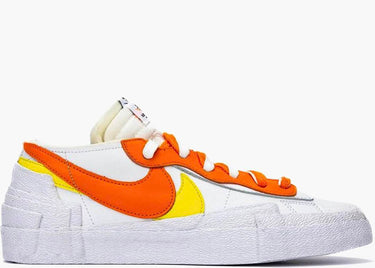 Il Sacai x Blazer Low "White Magma Orange" di Nike è una versione unica e audace del classico modello. Il rivestimento bianco nitido, i colori solari dell'arancio e del giallo e i doppi loghi Swoosh laterali creano un contrasto dinamico e moderno. Aggiornato ed elegante, questo blazer è perfetto per uno stile unico e accattivante.