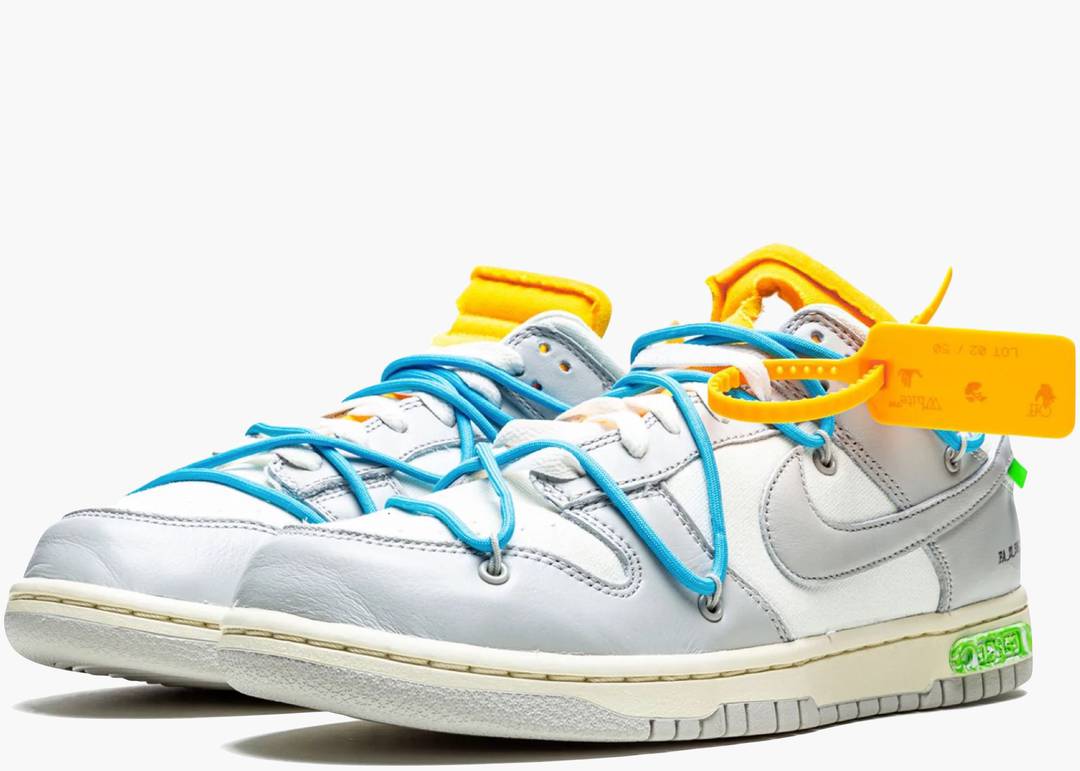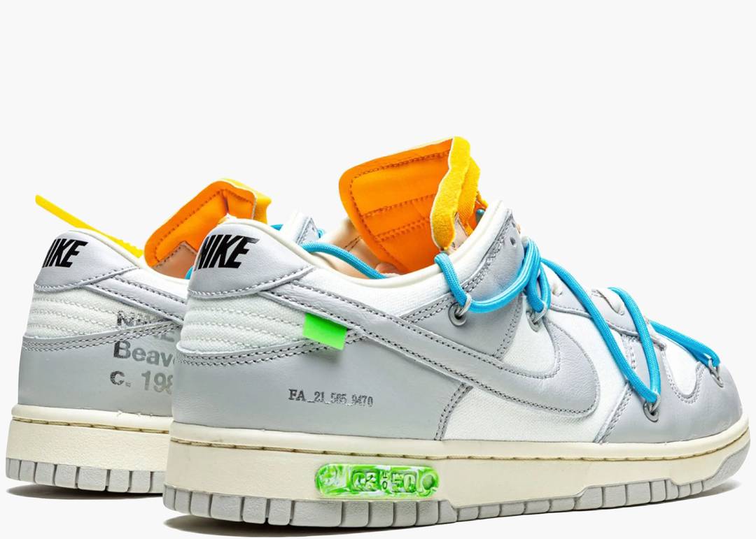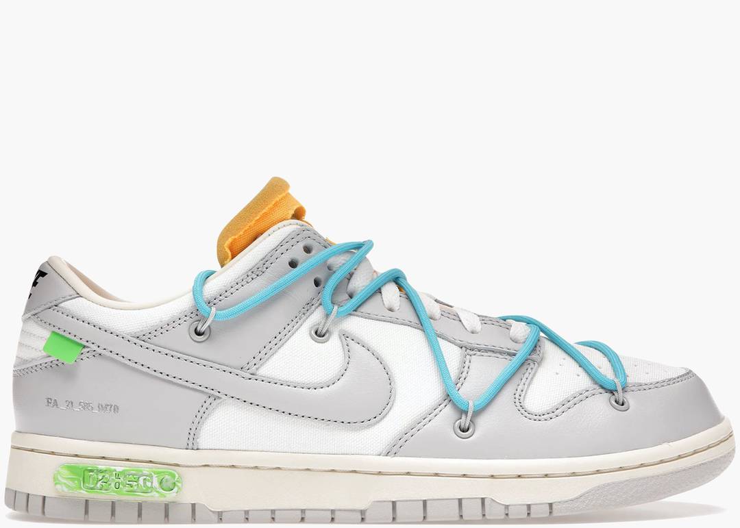 La Nike Dunk Low Off-White Lot 2 rappresenta una delle 48 varianti in tonalità grigia della celebre collaborazione tra Nike e Virgil Abloh. Contrariamente ai lotti 1 e 50, caratterizzati da colorazioni bianche e nere con Swoosh argento metallizzato, i lotti dal 2 al 49 si distinguono per la loro palette grigia con dettagli colorati unici. Questa serie esplora l'idea di Off-White di "definire l'area grigia tra bianco e nero", offrendo un design sofisticato e minimalista. La Lot 2 è stata resa disponibile esclusivamente attraverso l’accesso SNKRS, sottolineando la sua natura esclusiva e ricercata.