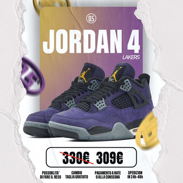 La JORDAN 4 LAKERS combina un design iconico con una performance ottimale. Questa scarpa è progettata per garantire supporto e stabilità durante le sessioni di allenamento, grazie a una suola che offre una trazione superiore. È ideale per atleti che cercano comfort e stile sul campo.