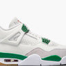 Scopri la nuova Nike Air Jordan 4 Retro SB Pine Green, unendo l'iconico stile Jordan con la prestazioni di Nike SB. La tomaia in pelle bianca e grigia è accentata con il verde pino, mentre la suola in gomma e il marchio rosso sulla linguetta completano il design. Edizione speciale con imballaggio esclusivo.