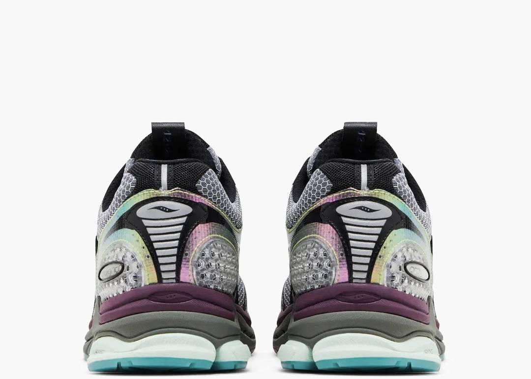 Saucony ProGrid Triumph 4 Winter Solstice Holographic: un'interpretazione affascinante del classico running del 2007 con una finitura olografica che cattura la luce in modo straordinario. La costruzione prevede una base in mesh respirabile completata da dettagli in sintetico e pelle cromata per una resistenza superiore. L'intersuola integra il rinomato sistema di ammortizzazione ProGrid, che garantisce comfort prolungato, mentre la tecnologia Arch-lock sul pannello mediale fornisce un supporto anatomico preciso e una stabilità affidabile. Una sneaker che equilibra magistralmente l'eredità tecnica del running heritage con l'estetica contemporanea, ideale per chi apprezza il design innovativo e le prestazioni consolidate.